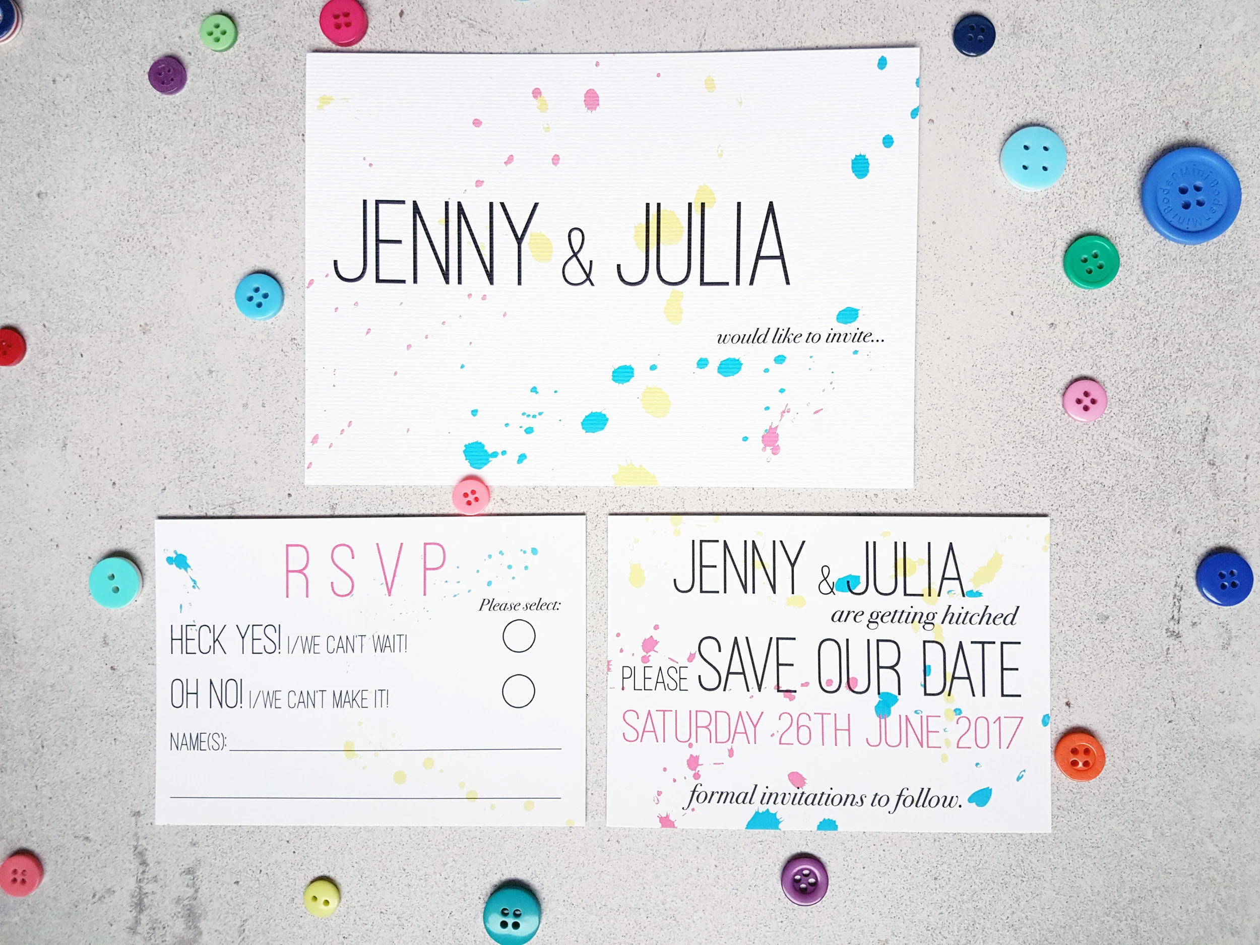 - Invitations: A6 (105mm x 148mm), flat and printed on both sides.